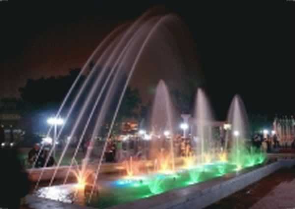 Программируемая анимированные фонтан мог командовать производительность брызг воды и света. Есть несколько программ, может быть записана в и проводится в соответствии с вашими потребностями.