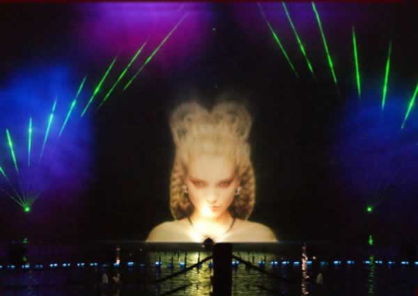 1.By насосы высокого давления и воды занавес генератор ускорения брызг воды, вода распыляется в серебряной занавес воды, как гигантский вентилятор. Тогда вы можете проецировать видеосигнал на этом волшебном занавес воды, чтобы сформировать водяная завеса фильм.
