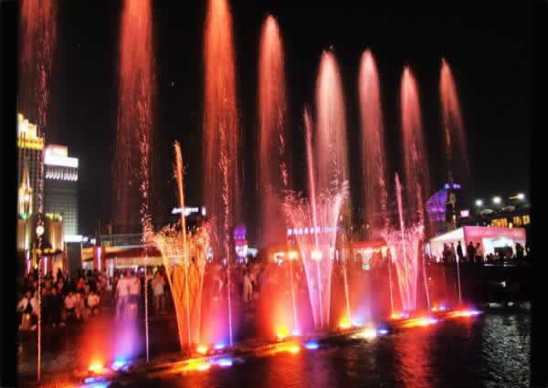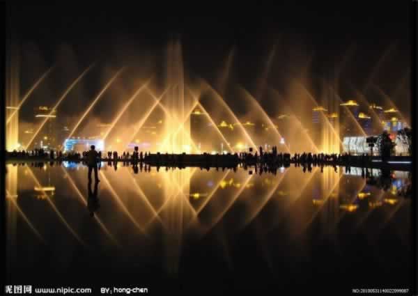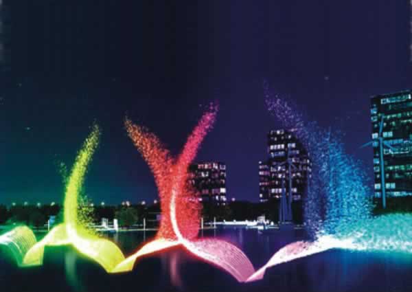 Characters of water falling are like a long thin stream of the screen. In the LED colored lights, it likes a piece of beautiful song flowing into people’s soft heart. From the distance, it looks like a girl’s beautiful skirt.